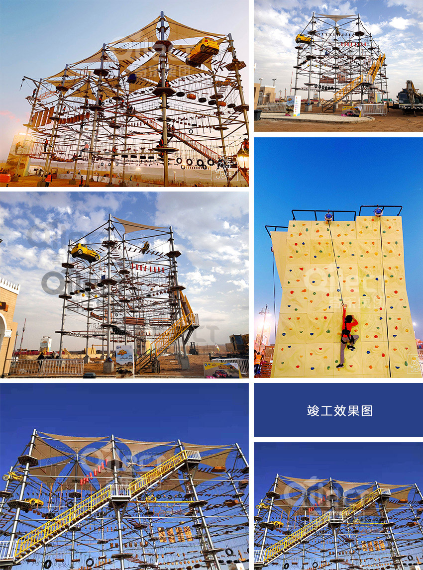 奇樂游樂是游樂設備實力廠家,美國 Galaxy Multi Rides是奇樂在美國做的忍者道拓展項目,是一個在戶外搭建起來的拓展項目,室內大人,青少年挑戰,游玩的項目。本忍者道拓展有攀巖墻,空中攀爬挑戰關卡都能多種拓展項目,是由奇樂優秀的設計師團隊設計出來的方案,忍者道拓展項目在國外是非常流行的一種項目之一,它是可以鍛煉游玩者的體能,需要有優秀的身體素質,也能鍛煉游玩者的身體。