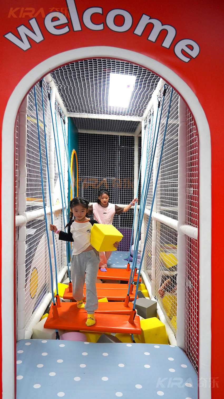 結(jié)構(gòu)穩(wěn)固,邊角全部采用軟包防護,地面全部使用高密度緩沖地墊,全方位保護孩子免于跌落傷害,從源頭上杜絕安全隱患。
