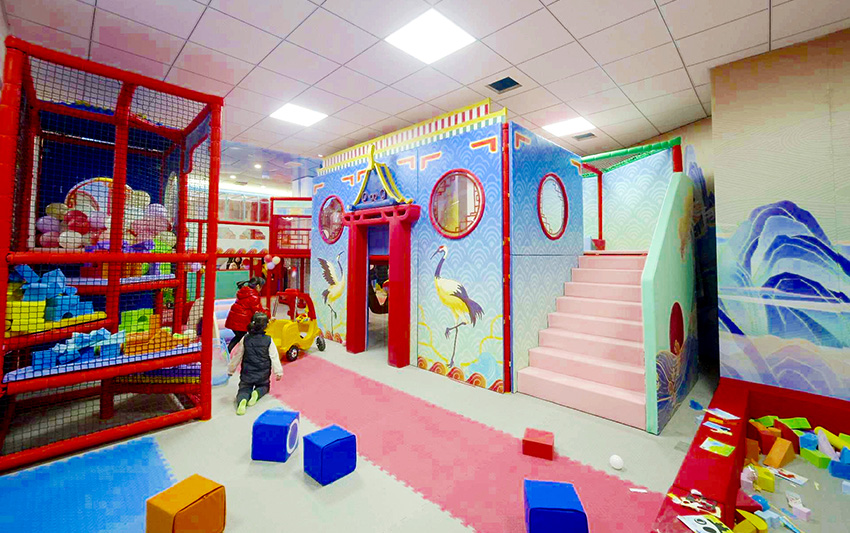 益童歡樂園以兒童游樂為中心,融入多種親子互動、少兒益智的優質項目,包括了滑梯、球池、沙池、椰子樹、彈跳迷宮等項目,玩法豐富有助于兒童身心健康成長。國潮風主題形象地將帶有濃郁傳統節日文化色彩的喜慶元素展現出來,從而增強了樂園文化屬性。真正將中華文化精粹植入樂園項目中,為游客打造一個傳承悠久歷史文明的古風世界,使孩子們在玩樂中從小培養起對傳統文化的認同與自豪感。