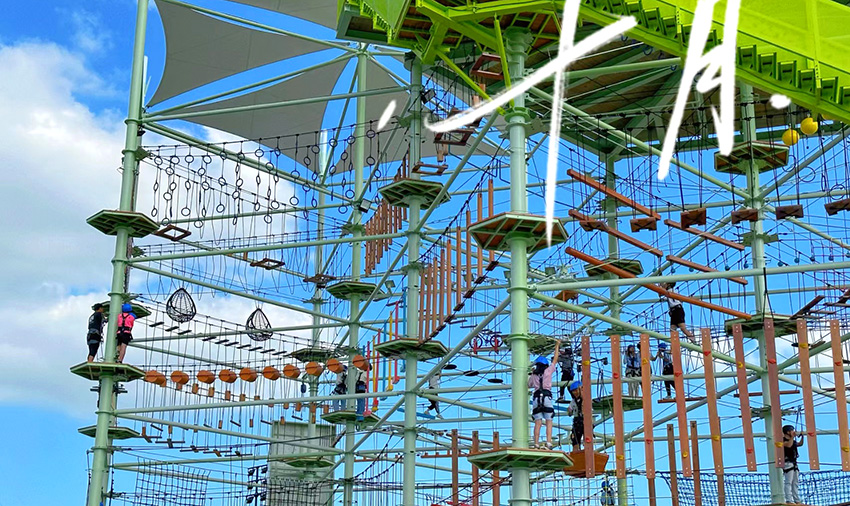 第一層是兒童步道,設(shè)計了字母橋、小熊爪橋、搖擺輪胎、獨木橋等適合較低齡兒童游玩的項目。