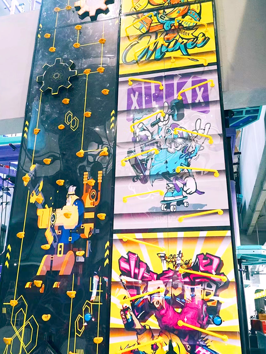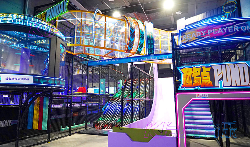 設計項目:蹦床、彈跳迷宮、攀巖、滑梯、拓展步道、VR戰車、360°自行車、體感游戲等。