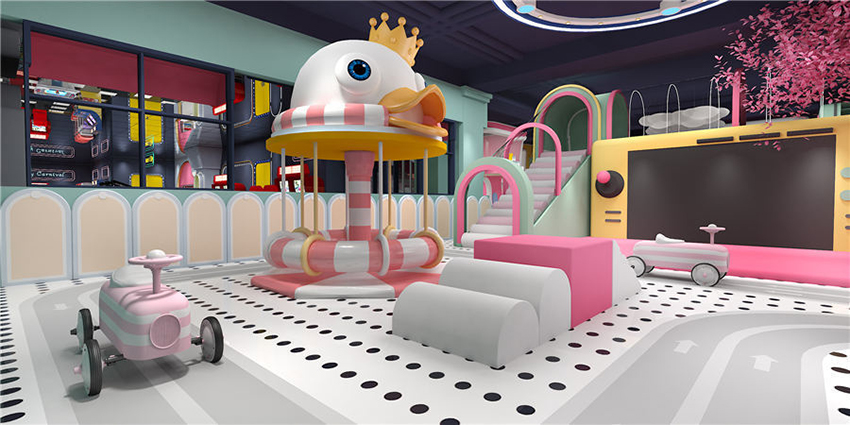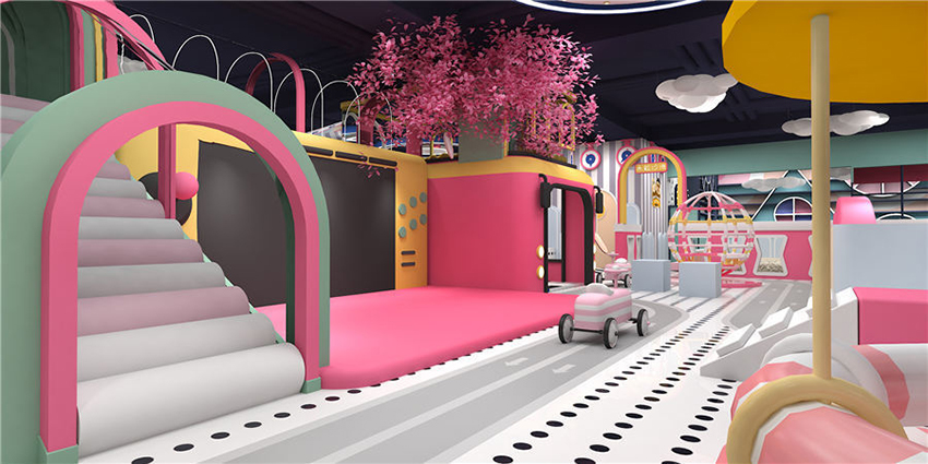 項目主色調以鐵綠色為主,場地空間布局層次分明、造型新穎規劃合理。以茉莉配色為設計理念,支持馬卡龍系列定制。內部游樂項目配置豐富齊全,包括滑滑梯、球池、椰子樹、彈跳迷宮、沙池、小蹦床等項目,造型設計活潑可愛充滿卡通風格,外觀色彩五彩繽紛能夠令孩子產生親切感,項目娛樂性互動性較強,清新而又舒適的游玩環境,能夠使孩子在玩樂中喚醒對美的渴望。